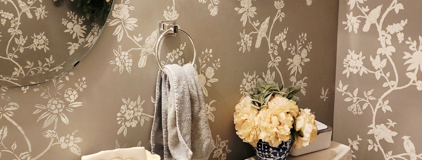 I believe that my stencil chinoiserie painting created that enveloping sensation in our powder room.