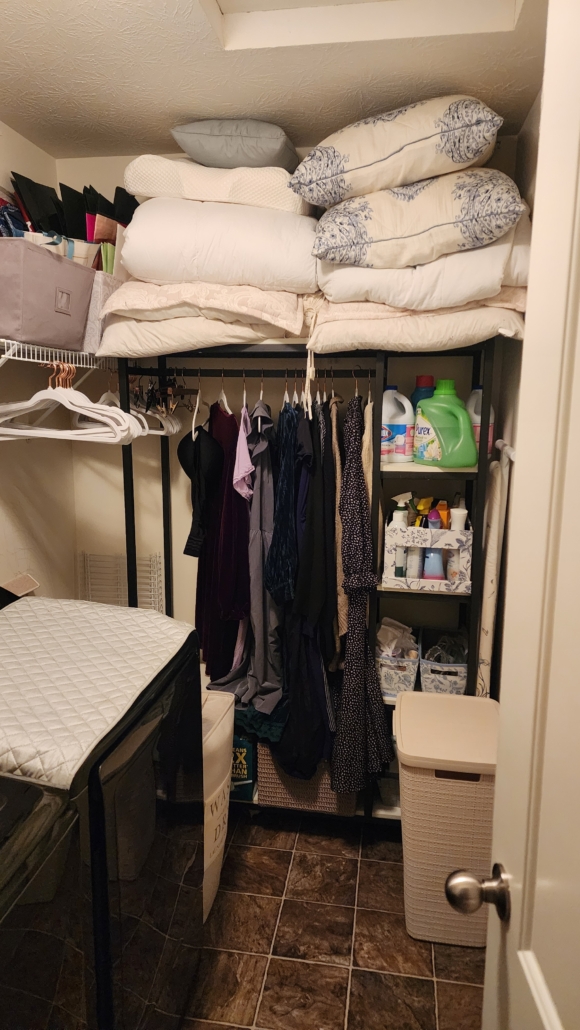 This is what the room looked like before. I really needed to go through all of my linens and blankets. I needed to look at all of the products that I had. I needed to get rid of extra hangers. There was so much decluttering that needed to happen.